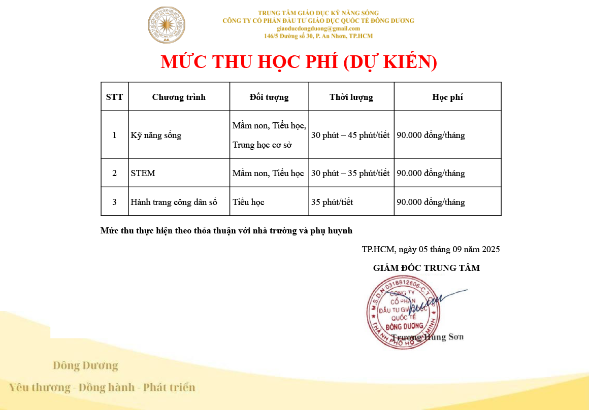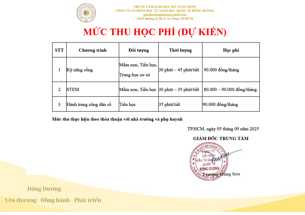 Dự kiến học phí